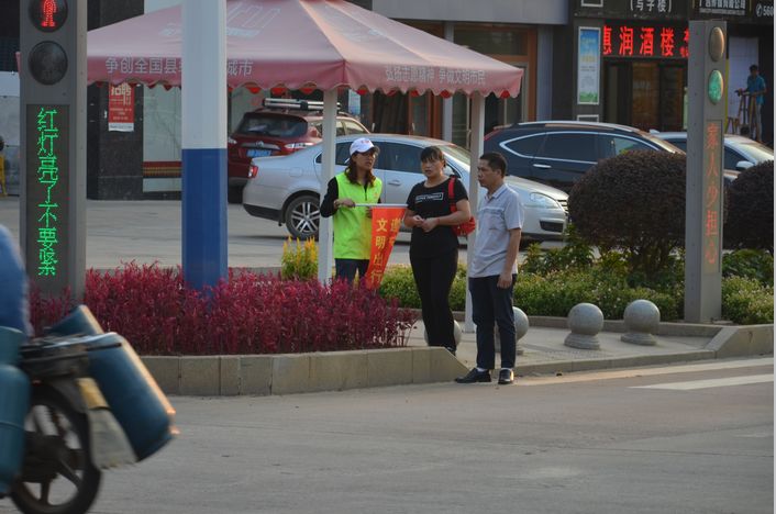對(duì)行人和非機(jī)動(dòng)違法行為、機(jī)動(dòng)車不禮讓斑馬線進(jìn)行勸導(dǎo),引領(lǐng)行人安全通過(guò)斑馬線。愛(ài)心志愿者身著愛(ài)心志愿者馬夾,頭戴文明志愿者帽子,手拿“文明出行 遵守交規(guī)”紅旗,成為交通航線上一條靚麗的風(fēng)景線。